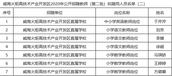 2020年威海火炬高技術(shù)產(chǎn)業(yè)開發(fā)區(qū)公開招聘教師(第二批)擬聘用人員公示(二)