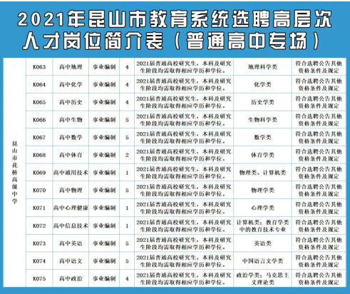 2021年蘇州昆山市花橋高級中學公開選聘高層次人才公告