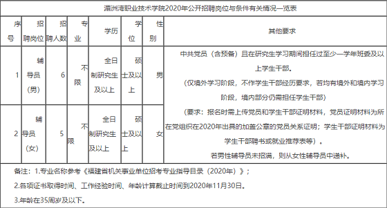 2020福建省莆田湄洲灣職業(yè)技術(shù)學(xué)院第二批公開招聘工作人員公告【11人】