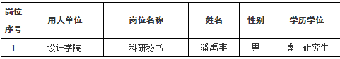 根據(jù)《廣西壯族自治區(qū)事業(yè)單位公開招聘人員實(shí)施辦法》(桂人社發(fā)〔2011〕155號)、《關(guān)于印發(fā)廣西壯族自治區(qū)高等學(xué)校非實(shí)名用人制度試行辦法的通知》(桂教人〔2016〕53號)、《關(guān)于進(jìn)一步規(guī)范事業(yè)單位公開招聘崗位條件設(shè)置和資格審查有關(guān)問題的通知》(桂人社規(guī)〔2019〕8號)等有關(guān)文件精神,經(jīng)直接考核程序,擬聘用潘禹非同志,現(xiàn)予以公示,公示期為7個(gè)工作日(2020年11月19日至11月27日)