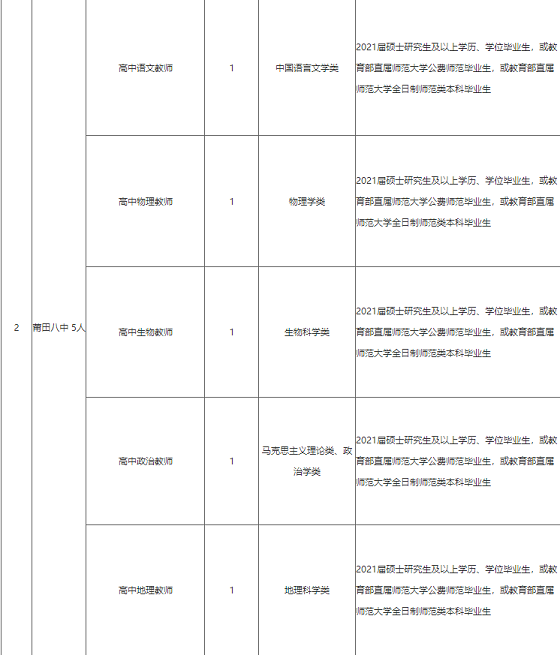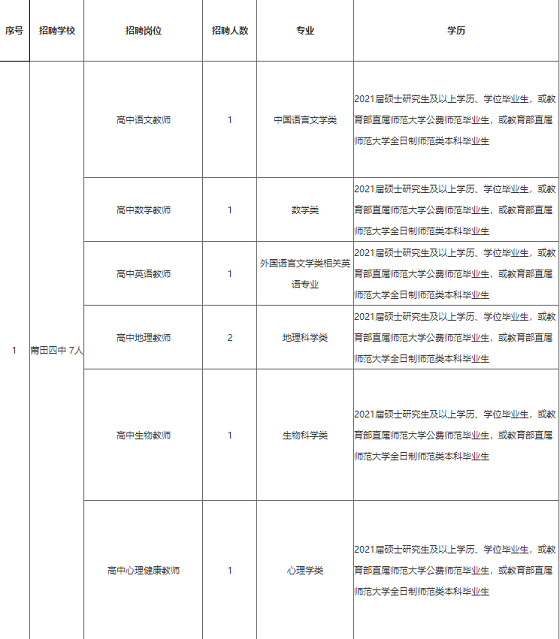 為打造品牌學校,吸引高學歷優(yōu)秀高校畢業(yè)生到我區(qū)省級達標學校任教,現(xiàn)就莆田市荔城區(qū)赴閩南師范大學、福建師范大學考核招聘2021年高中新任教師方案公告如下: