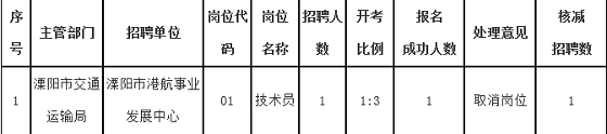 根據《2020年溧陽市事業(yè)單位公開招聘工作人員公告》(常人社事招〔2020〕36號)要求,本次公開招聘報名工作結束后,部分招聘崗位因未達到開考比例,按規(guī)定予以核減,F將被核減的崗位招聘計劃公告如下: