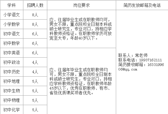 2、發(fā)送簡歷時(shí),郵件主題須注明應(yīng)聘校區(qū)、應(yīng)聘學(xué)科和應(yīng)聘者姓名,格式統(tǒng)一要求如下:中牟求實(shí)學(xué)校+初中語文+王小明;