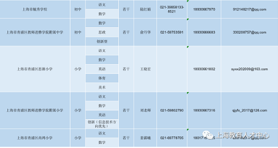 詳見《青浦區(qū)教育局2021年高校校園師資招聘各校崗位需求及聯(lián)系方式》一覽表。