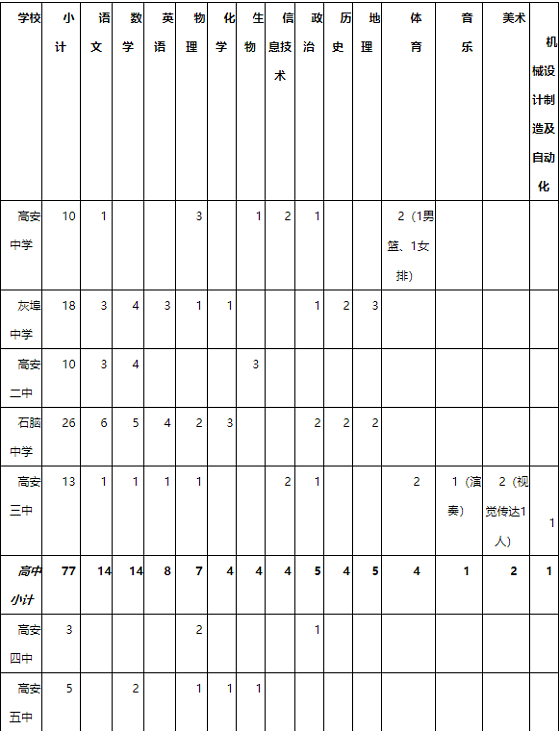 (二)灰埠中學、石腦中學、高安三中高中教師崗位