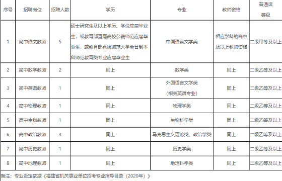 為滿足教育教學(xué)發(fā)展的需要,提高學(xué)校教師隊伍整體素質(zhì),根據(jù)學(xué)校實際情況,現(xiàn)制定莆田華僑中學(xué)考核招聘2021年新任教師工作方案如下: