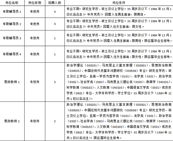 2.表格崗位條件中學(xué)科、專業(yè)名稱后括號(hào)中的數(shù)字為學(xué)科專業(yè)代碼,請(qǐng)考生注意區(qū)分學(xué)碩、專碩代碼。