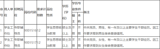 (4)需放寬年齡(1988年1月1日至1989年12月31日之間出生)的碩士學(xué)歷應(yīng)聘者還需提供高校專職輔導(dǎo)員工作經(jīng)歷證明(加蓋學(xué)生工作部公章);