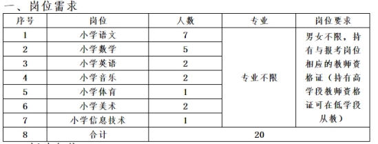 為進(jìn)一步加強(qiáng)師資隊伍建設(shè),優(yōu)化教育資源均衡配置,根據(jù)《2020年度西寧市城中區(qū)面向社會公開招聘區(qū)聘教師工作實施方案》,決定面向社會公開招聘區(qū)聘小學(xué)教師20名,現(xiàn)向有關(guān)事宜公告如下: