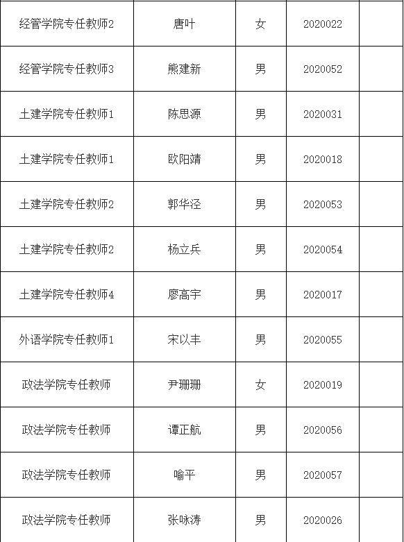 根據(jù)《湖南理工學(xué)院2020年公開招聘公告》及有關(guān)規(guī)定,經(jīng)報(bào)名、資格審查、考核、考察、體檢等程序,經(jīng)湖南理工學(xué)院人才工作領(lǐng)導(dǎo)小組集體研究,確定許俊東等23名同志為2020年湖南理工學(xué)院公開招聘擬聘用人選,現(xiàn)予以公示。