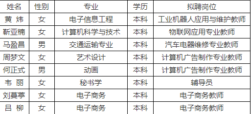根據(jù)《廣西壯族自治區(qū)事業(yè)單位公開招聘人員實施辦法》(桂人社發(fā)〔2011〕155號)、《關于進一步規(guī)范區(qū)直事業(yè)單位公開招聘工作的通知》(桂人社發(fā)〔2013〕135號)、《關于落實“放管服”改革精簡事業(yè)單位增人手續(xù)的通知》(桂人社發(fā)〔2018〕27號)和我校2020年公開招聘工作人員公告相關規(guī)定,經(jīng)過筆試、面試、考核、體檢等程序,現(xiàn)將擬聘人員名單及基本情況予以公示,公示期為7個工作日(2020年12月21日—2020年12月29日)。如對擬聘人員有異議,請以書面形式,并署真實姓名和聯(lián)系方式,于2020年12月29日前向廣西商貿(mào)高級技工學校公開招聘工作領導小組辦公室反映。聯(lián)系電話:0771-3213263,地址:南寧市西鄉(xiāng)塘區(qū)大嶺路73號,郵政編碼:530007。擬聘人員名單如下: