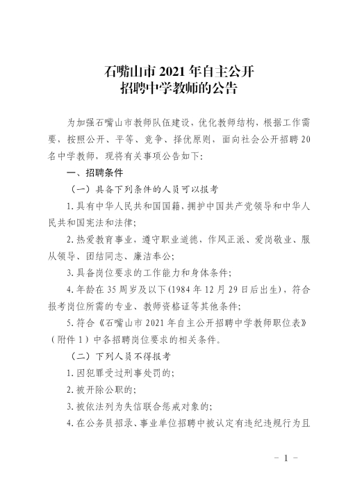 附件1:石嘴山市2021年自主公開(kāi)招聘中學(xué)教師職位表.xlsx