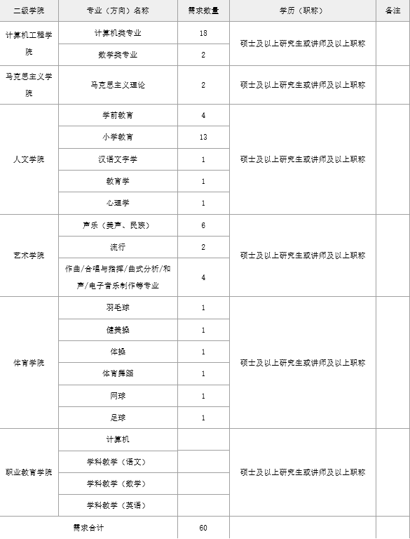 商丘學院2021年春季學期教師需求統(tǒng)計