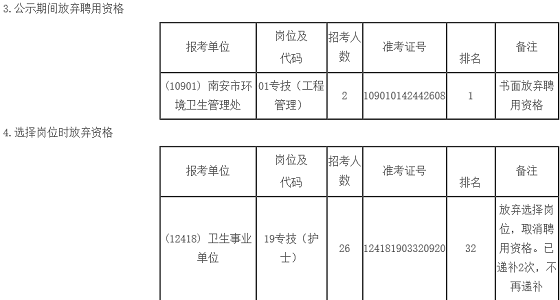 根據(jù)招考公告,考生在資格復審、體檢等環(huán)節(jié)因不合格或棄權(quán)等原因造成崗位空缺的,在該崗位符合條件的其他考生中按綜合成績從高到低的順序依次等額遞補,第三批遞補人員具體名單如下: