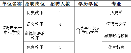 報(bào)名方式:把填好的《臨汾市第一中心學(xué)校校園招聘教師報(bào)名表》及個人簡歷發(fā)送到電子郵箱:wyq2021006@163.com。(校園招聘教師報(bào)名表見文末)