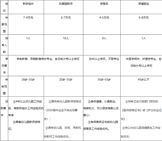 2.報名材料:①個人簡歷;②大專及以上學(xué)歷的畢業(yè)證書、學(xué)位證書;③教師資格證、育嬰師資格證或保育員證書、保健醫(yī)生提供相關(guān)資格證書。