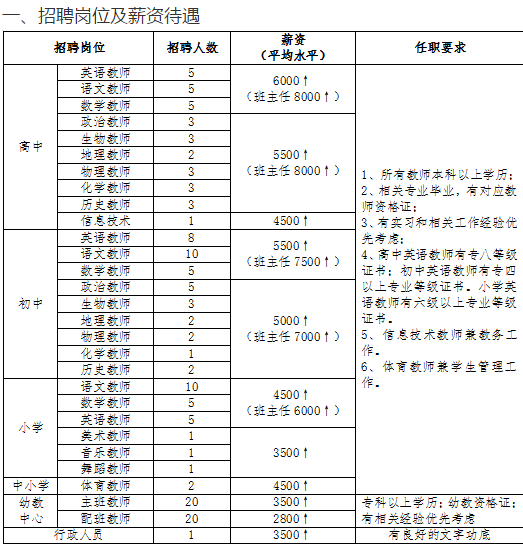 學(xué),F(xiàn)有172個(gè)教學(xué)班,在校生7000余名,教職工700余人。近年來(lái),教學(xué)成績(jī)斐然。因發(fā)展需要,現(xiàn)面向社會(huì)招聘高中、初中、小學(xué)各學(xué)科優(yōu)秀老師、行政及管理人員。