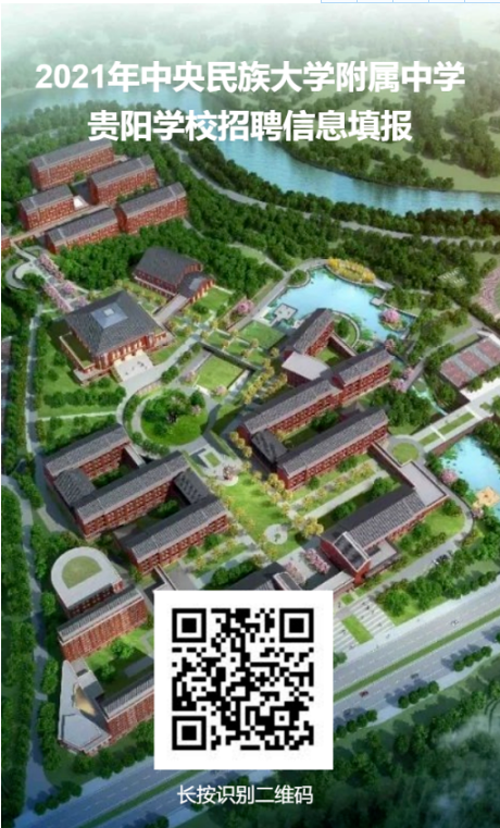 1.凡符合應(yīng)聘條件者,掃描下方二維碼填寫《2021年中央民族大學(xué)大學(xué)附屬中學(xué)貴陽(yáng)學(xué)校招聘信息表》,進(jìn)行信息登記。