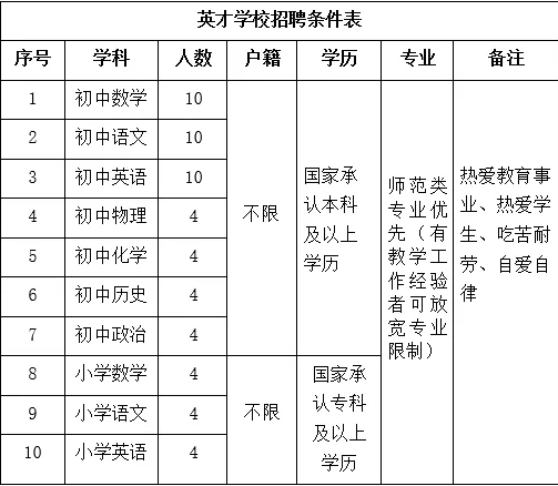 英才學(xué)校是由河北省優(yōu)秀教育世家、優(yōu)秀教育工作者郝樹仲于2001年創(chuàng)辦的一所九年一貫制私立學(xué)校,實行寄宿制封閉管理。自開辦以來,被授予“教育家辦學(xué)示范基地”“平安省會先進學(xué)!薄懊褶k教育先進單位”“安全文明校園”等稱號,郝樹仲本人也被市委市政府評為“民辦教育先進個人”被第九屆中國教育家大會授予“科學(xué)發(fā)展十年輝煌中國特色教育十大杰出校長”。2021年,學(xué)校將擴大辦學(xué)規(guī)模,需面向社會公開招聘教師,現(xiàn)公告如下:
