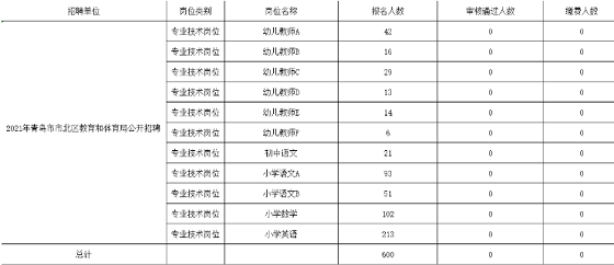 山東青島市北區(qū)2021年教師招聘107人報名人數(shù)統(tǒng)計如下「時間截到2月25日11:00」
