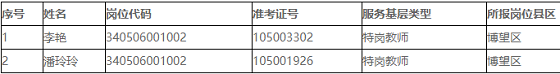公示日期自2021年3月29日至4月2日。若有異議,請(qǐng)及時(shí)向博望區(qū)教師管理服務(wù)中心反映情況,聯(lián)系電話:0555-6065739。