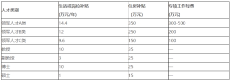 備注:領軍人才崗位補貼共資助3年,其他人才共資助5年。