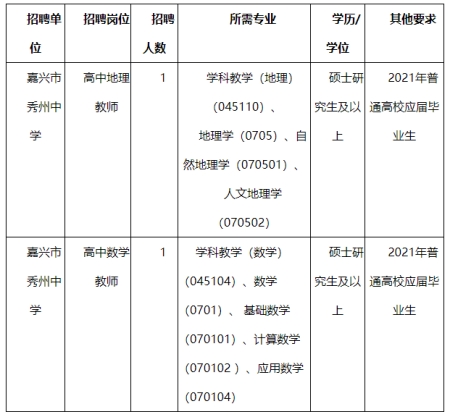 因我校教育教學(xué)工作需要,經(jīng)嘉興市教育局同意,嘉興市人力資源和社會(huì)保障局備案,嘉興市秀州中學(xué)2021年計(jì)劃公開(kāi)招聘事業(yè)編制教師2名,F(xiàn)將有關(guān)事項(xiàng)公告如下: