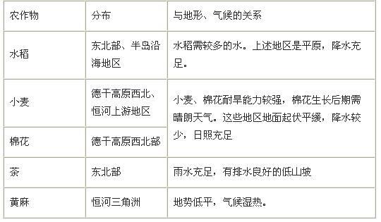 2.農(nóng)作物分布與自然條件的關(guān)系: