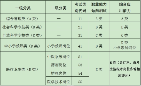 (二)筆試科目:考試科目為職業(yè)能力傾向測(cè)驗(yàn)和綜合應(yīng)用能力兩科,兩個(gè)科目滿分均為150分。不同類型的招聘崗位使用不同的筆試試題,試題按崗位類別分為綜合管理類(A類)、社會(huì)科學(xué)專技類(B類)、自然科學(xué)專技類(C類)、中小學(xué)教師類(D類)和醫(yī)療衛(wèi)生類(E類)五個(gè)考試類別。