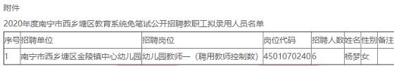 附件:2020年度南寧市西鄉(xiāng)塘區(qū)教育系統(tǒng)免筆試公開招聘教職工擬錄用人員名單