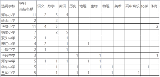 在11所中小學(xué)校中選調(diào)教師57名,具體選調(diào)崗位(學(xué)科)及名額如下: