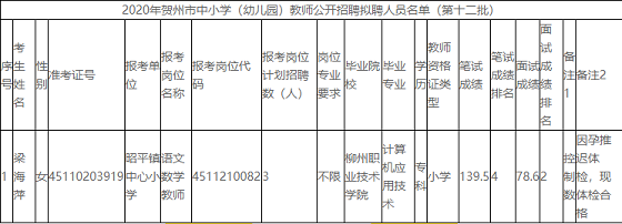 附件:2020年賀州市中小學(幼兒園)教師公開招聘擬聘人員名單(第十二批)