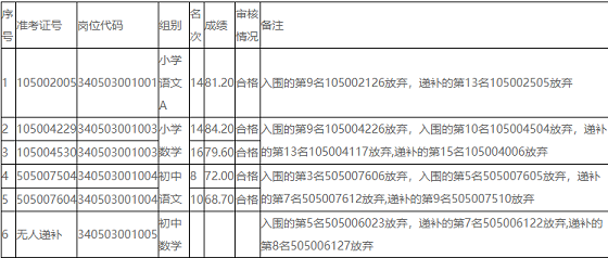 根據(jù)《2021年花山區(qū)區(qū)屬中小學(xué)新任教師公開(kāi)招聘公告》規(guī)定,于5月7日對(duì)擬入圍專業(yè)測(cè)試人員進(jìn)行了現(xiàn)場(chǎng)資格復(fù)審并按規(guī)定進(jìn)行了兩次遞補(bǔ)。截止當(dāng)天下午17:00,經(jīng)資格復(fù)審不合格或未按時(shí)參加現(xiàn)場(chǎng)資格復(fù)審的共6人。