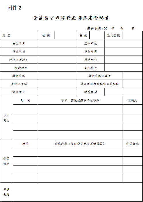 2.會(huì)昌縣公開(kāi)招聘教師報(bào)名登記表