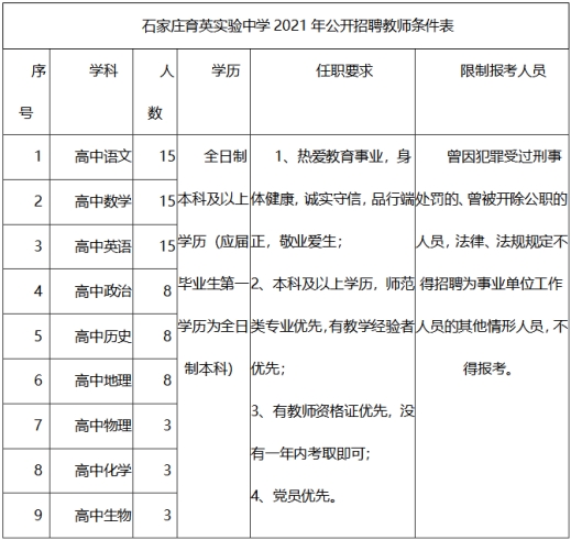 對筆試、面試、體檢均合格的考生確定為擬錄用人選,由石家莊育英實驗中學對擬聘人員進行崗前培訓,一周培訓考核期,經(jīng)培訓考核合格后方可上崗。