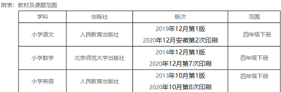 專業(yè)測(cè)試所用教材為迎江區(qū)小學(xué)現(xiàn)行使用的教材。專業(yè)測(cè)試時(shí)為考生提供教材,具體教材及課題范圍見(jiàn)附表。