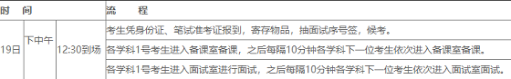 面試采取片段教學(xué)方式進(jìn)行(面試成績(jī)總分100分)。監(jiān)察人員以抽簽的方式確定“片段教學(xué)”內(nèi)容,參加面試的考生根據(jù)專業(yè)崗位按抽簽順序逐個(gè)進(jìn)入備課室編寫(xiě)教學(xué)設(shè)計(jì)(注:所編寫(xiě)的教學(xué)設(shè)計(jì)不計(jì)入總分),備課時(shí)間為40分鐘。備課結(jié)束后依序進(jìn)入相應(yīng)學(xué)科面試室進(jìn)行片段教學(xué),片段教學(xué)時(shí)間為10分鐘以內(nèi)。