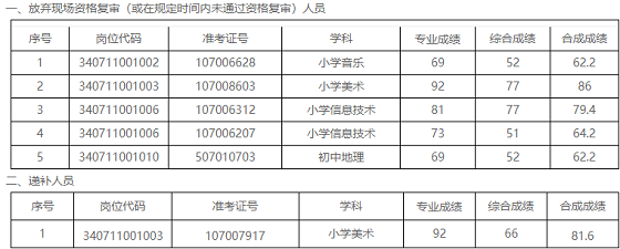 因部分考生自愿放棄(或在規(guī)定時(shí)間內(nèi)未通過)現(xiàn)場(chǎng)資格復(fù)審,根據(jù)筆試成績(jī)和公告要求,現(xiàn)就資格復(fù)審遞補(bǔ)工作通知如下: