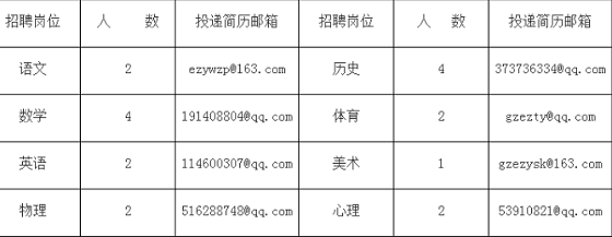 報(bào)名郵箱見(jiàn)“招聘崗位”表格中對(duì)應(yīng)科目的郵箱。