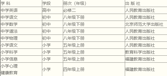 2.面試采用蕉城區(qū)現(xiàn)行使用教材版本。