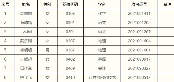 1.根據(jù)面試資格確認情況,按照《襄城縣2021年公開招聘教師簡章》中“本次報名資格審查工作貫穿于招聘工作的全過程!薄胺舶l(fā)現(xiàn)報考人員與招聘崗位所要求的資格條件不符的,取消其考試、聘用資格,對提供虛假材料的,依法依紀追究責(zé)任!薄懊嬖嚳杖比藬(shù),在筆試成績合格人員中從高分到低分依次遞補!钡囊(guī)定,共有13名考生面試資格確認不合格、放棄面試資格或放棄面試遞補資格。結(jié)合筆試成績,確定8名遞補人員,名單如下: