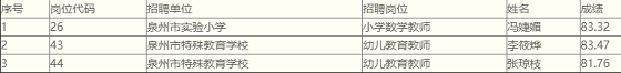 根據(jù)《2021年泉州市直有關(guān)學(xué)校公開招聘新任教師公告》,現(xiàn)將擬聘用人員及成績公示如下,公示時(shí)間:2021年9月17日--2021年9月27日。若有疑問,請咨詢0595-22781630。