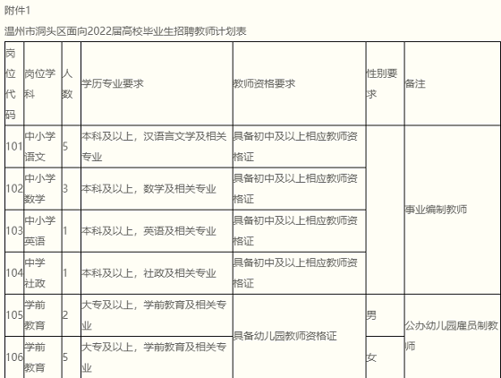 3.簽訂就業(yè)協(xié)議書的畢業(yè)生在2022年7月前將檔案調(diào)至洞頭區(qū)教育局,在2022年8月1日前不能按規(guī)定取得應(yīng)聘崗位(學(xué)科)規(guī)定的學(xué)歷學(xué)位證書和教師資格證的,取消聘用資格。