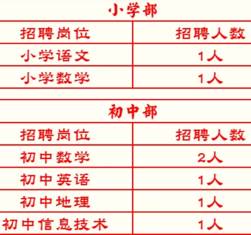 1.小學崗位:要求?萍耙陨蠈W歷;初中崗位:要求本科及以上學歷。師范類院校畢業(yè),非師范院校畢業(yè)者限報名,有教學經驗者優(yōu)先。