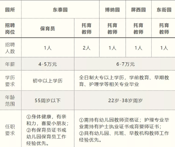因春季托育園新增班級開班需要,面向社會公開招聘教師、保育員,F(xiàn)將招聘條件及相關(guān)事項公告如下: