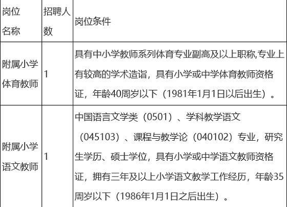 根據(jù)《南昌大學(xué)2021年公開(kāi)招聘教師公告》及實(shí)際招聘情況,附屬小學(xué)體育教師、語(yǔ)文教師崗因無(wú)人通過(guò)資格初審和資格復(fù)審,F(xiàn)對(duì)附屬小學(xué)體育教師、語(yǔ)文教師崗進(jìn)行補(bǔ)充招聘,現(xiàn)就相關(guān)事項(xiàng)公告如下: