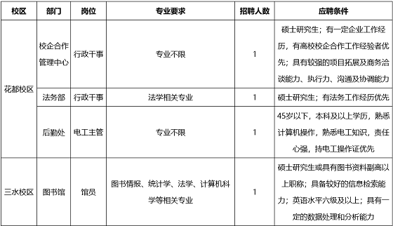 廣州工商學(xué)院是教育部批準(zhǔn)設(shè)立的民辦全日制普通本科院校,創(chuàng)建于1995年,2004年獨(dú)立設(shè)置為廣州工商職業(yè)技術(shù)學(xué)院,2014年5月升格本科并更名為廣州工商學(xué)院。2018年通過(guò)學(xué)士學(xué)位評(píng)估,獲批成為學(xué)士學(xué)位授予單位;2020年11月,接受了教育部本科教學(xué)工作合格評(píng)估;2021年5月,獲批成為廣東省博士工作站新設(shè)站單位、廣東省碩士學(xué)位授予立項(xiàng)建設(shè)單位。學(xué),F(xiàn)有廣州花都和佛山三水兩個(gè)校區(qū)。學(xué),F(xiàn)有教師總數(shù)1503人,其中自有專(zhuān)任教師1183人,其中具有副高級(jí)及以上職稱(chēng)教師364人;具有碩士、博士學(xué)位的教師919人。享受?chē)?guó)務(wù)院“政府特殊津貼”專(zhuān)家2人,全國(guó)優(yōu)秀教師2人,全國(guó)高校思想政治理論課教學(xué)能手1人。學(xué)校堅(jiān)持校長(zhǎng)鄺邦洪教授提出的“以德為行,以學(xué)為上”教育思想,大力推進(jìn)“進(jìn)課室、進(jìn)圖書(shū)館、進(jìn)實(shí)驗(yàn)實(shí)訓(xùn)室、進(jìn)體育場(chǎng)館、進(jìn)社會(huì)”的“五進(jìn)”教育實(shí)踐活動(dòng),培養(yǎng)德智體美勞全面發(fā)展的合格大學(xué)生。2020年,學(xué)校被評(píng)選為廣東省民辦教育四十周年“突出貢獻(xiàn)機(jī)構(gòu)”;2021年3月,學(xué)校入選“2020廣州技術(shù)市場(chǎng)15強(qiáng)高!卑駟,是唯一入選的民辦高校;2021年4月,學(xué)校入選全國(guó)民辦本科院校競(jìng)爭(zhēng)力排行榜100強(qiáng)。因?qū)W校發(fā)展需要,現(xiàn)面向社會(huì)公開(kāi)招聘行政教輔人員數(shù)名,有關(guān)事項(xiàng)具體如下: