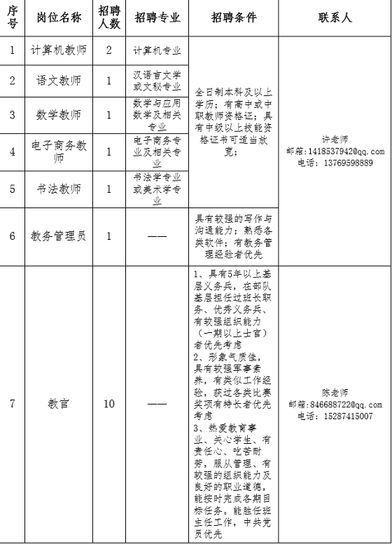 因?qū)W校工作需要,現(xiàn)特聘任課教師、教官數(shù)名,具體要求如下: