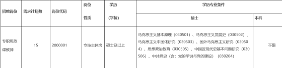 本次專職思政課教師招聘計(jì)劃為15人,全部納入學(xué)校正式事業(yè)編制,具體崗位計(jì)劃如下: