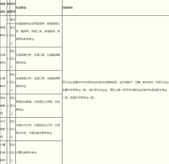 4.學歷資歷要求:要求碩士研究生以上學歷,本科、碩士(或博士)階段所學專業(yè)與所招聘的專業(yè)相同或相近。